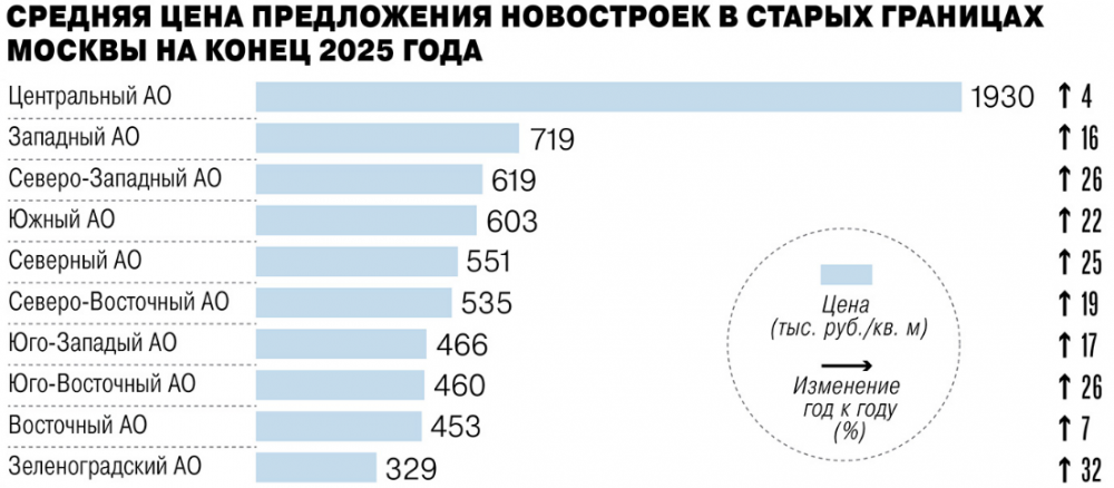 Гендиректор по работе с жилой недвижимостью Ricci Наталия Кузнецова ожидает, что по итогам 2026 года средневзвешенная цена новостроек в Москве составит 900 тыс. руб. за 1 кв. м, что на 15% больше, чем в 2025 году.