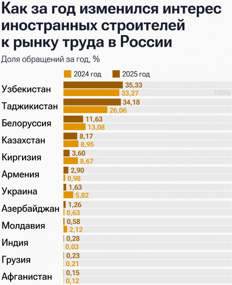В России в 2026 году ожидается рост спроса на строителей из Индии и других государств Южной и Юго-Восточной Азии, а количество рабочих из стран СНГ будет сокращаться